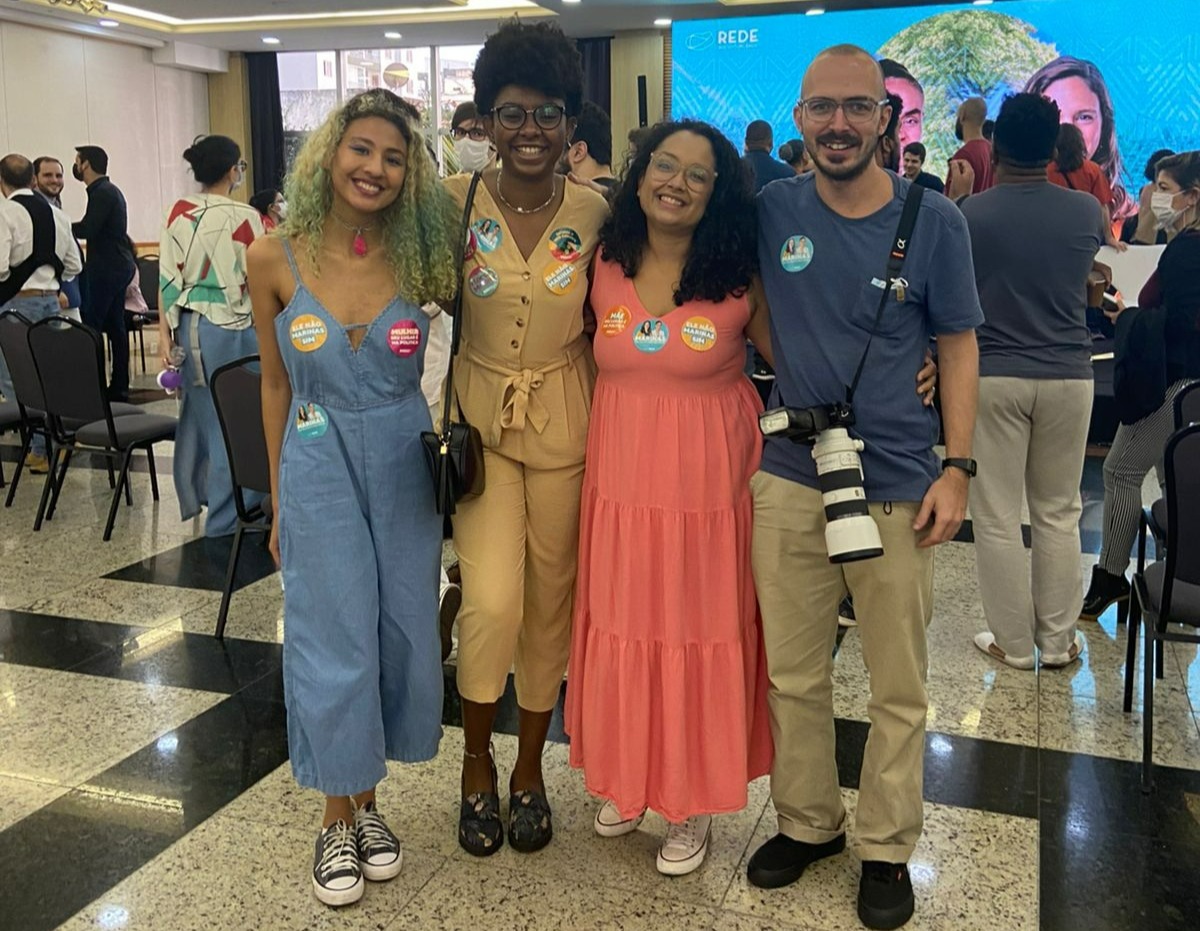 Essa sou eu, de cabelo sempre colorido, e ao meu lado está a deputada estadual por São Paulo, Marina Helou (Rede Sustentabilidade). De outubro de 2021 a janeiro de 2025 fiquei à frente de suas redes sociais, no planejamento de conteúdo, roteirização de vídeos e análise de desempenho com relatórios. Também acompanhei agendas e fiz captações de alguns conteúdos para as redes sociais. Em 2022, enfrentamos uma campanha eleitoral difícil, mas saímos vitoriosas, com o dobro de votos de seu primeiro mandato – nossa comunicação foi importante para isso acontecer.